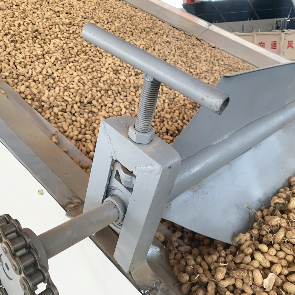 大型网带式果蔬烘干机是产业化生产用的连续式热风干燥设备,可根据生产需要对网带运行速度、温度和湿度进行调节,以满足对不同含水率、不同品种的辣椒进行烘干处理。