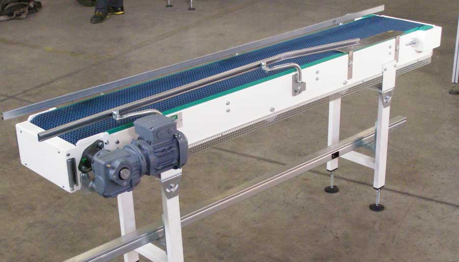 网式输送带的材质有:模块式塑料输送带材料:PP(聚丙烯)、PE(聚乙烯)、ACETAL(乙缩醛)、NYLON(尼龙)等材料。(某些带型符合FDA、USDA标准,因此广泛用于食品加工业。) 输送带的材质有:模块式塑料输送带材料:PP(聚丙烯)、PE(聚乙烯)、ACETAL(乙缩醛)、NYLON(尼龙)等材料。(某些带型符合FDA、USDA标准,因此广泛用于食品加工业。) 结构形式有:水平直线输送、提升爬坡输送、转弯输送等多种形式,输送带上还可增设提升挡板、侧挡板等附件,能满足各种工艺要求。 驱动方式有:减速电机驱动。 调速方式有:变频调速、无极变速。 机架材质有:不锈钢、铝型材、碳钢。